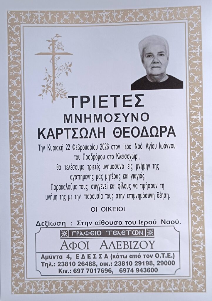 Αναζητήστε τις κηδείες και τα μνημόσυνα στο Νομό που θέλετε